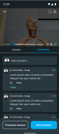 - For quizzes: Open the question you’d like to comment on. Tap on the Comment Icon: Tap the comment icon (usually displayed as a speech bubble or note symbol) to open the comment box. Write and Post Your Comment: Type your question, feedback, or note, and tap Post. Your comment will be saved at that specific location in the material for easy reference.