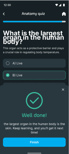 - Once you have completed all questions, tap Submit to review your overall results.