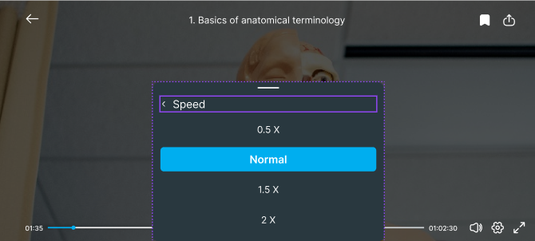 Playback Speed: Select the speed that suits you best, whether it’s slowing down to 0.5x for detailed learning or speeding up to1.25 , 1.5x or 2x to quickly review content.